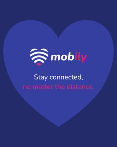 The brand's logomark is a heart made to look like mobile network bands. This appearance instantly sparks the idea of WiFi, data, and connectivity. The colour scheme is focused around two shades of blue, that represent calmness and security, and a vivid raspberry to represent love. The raspberry is used to highlight "ily" in the wordmark, and used at the core of the logomark. The raspberry highlight is used throughout communications to emphasise messages.